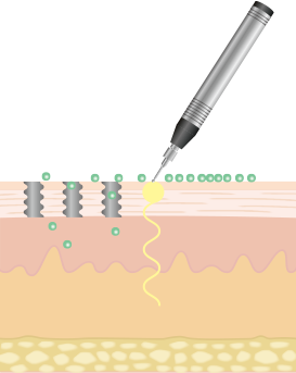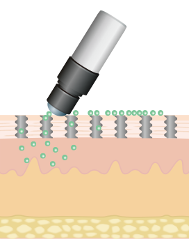 ペン型のプローブで特殊な電気パルスをお肌にあてる事により、親水性の小孔を生じさせます。
